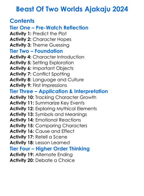 Beast Of Two Worlds Ajakaju 2024 Worksheet Activity Booklet