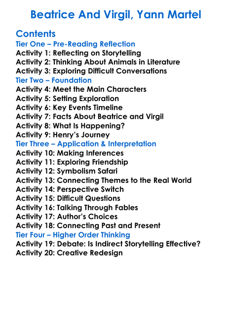 Beatrice And Virgil Yann Martel Worksheet Activity Booklet