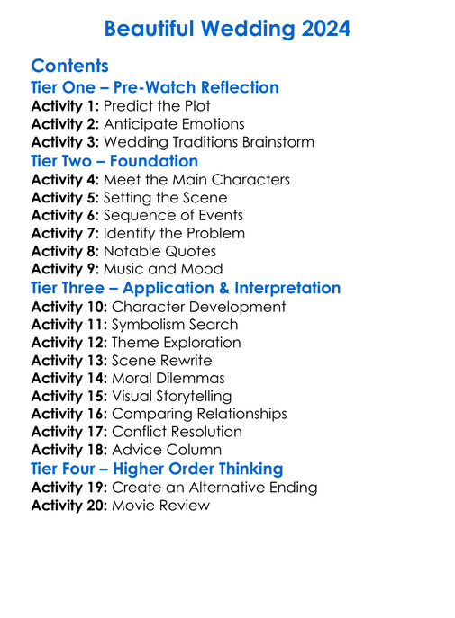 Beautiful Wedding 2024 Worksheet Activity Booklet