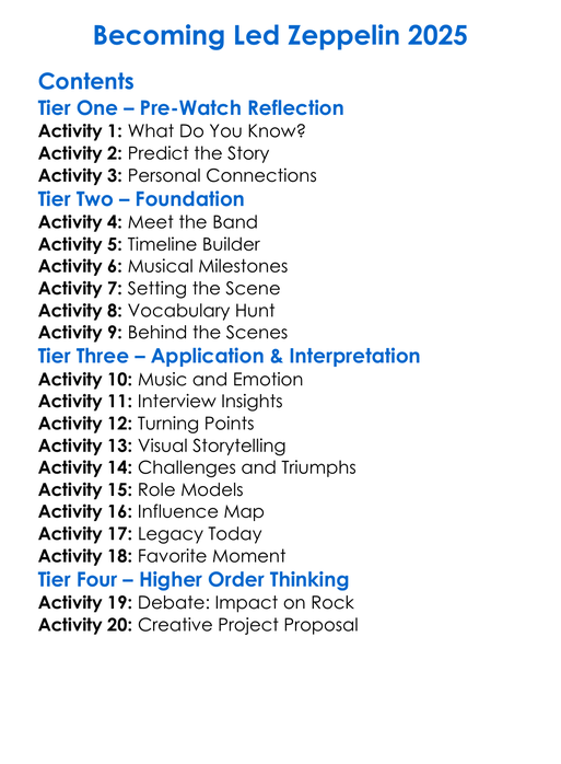 Becoming Led Zeppelin 2025 Worksheet Activity Booklet