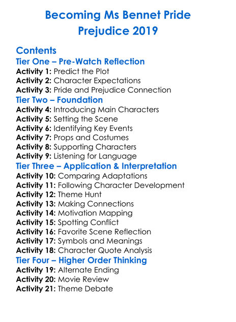 Becoming Ms Bennet Pride Prejudice 2019 Worksheet Activity Booklet