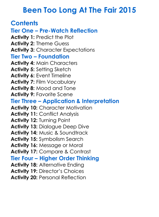 Been Too Long At The Fair 2015 Worksheet Activity Booklet
