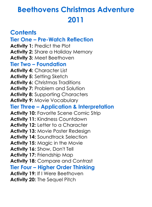 Beethovens Christmas Adventure 2011 Worksheet Activity Booklet