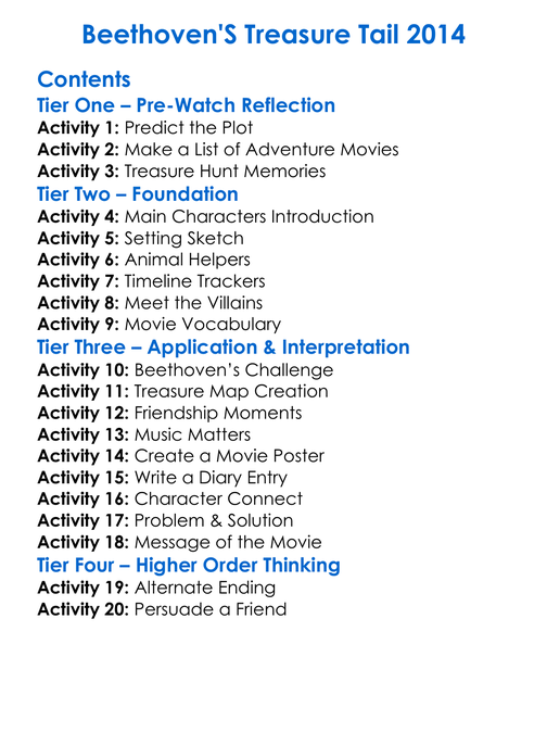 Beethovens Treasure Tail 2014 Worksheet Activity Booklet