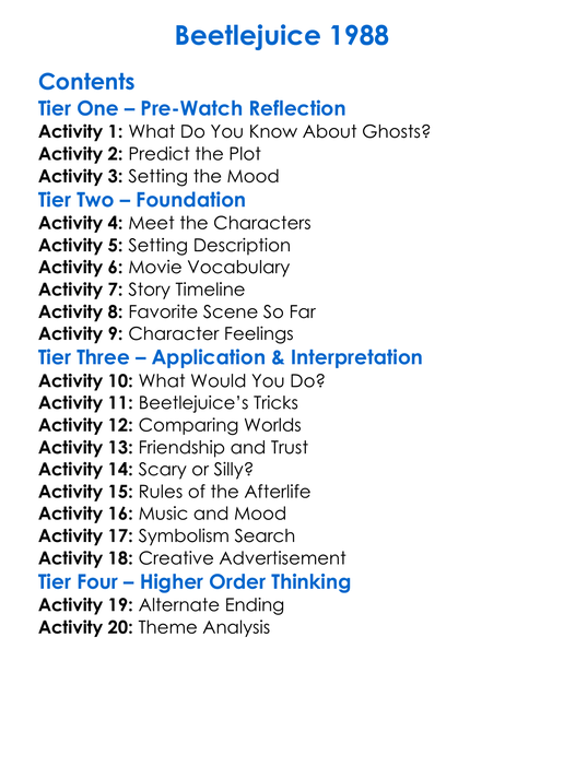 Beetlejuice 1988 Worksheet Activity Booklet