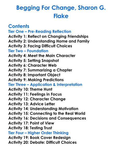 Begging For Change Sharon G Flake Worksheet Activity Booklet