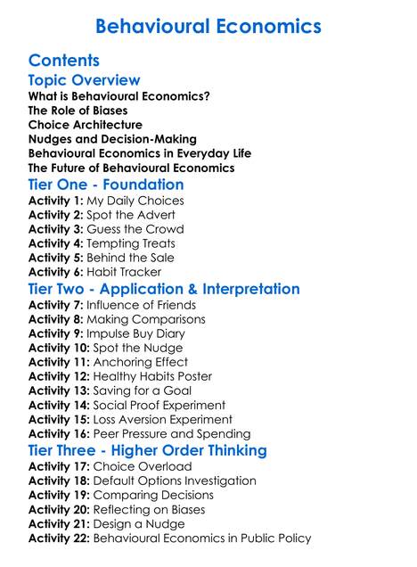 Behavioural Economics Worksheet Activity Booklet