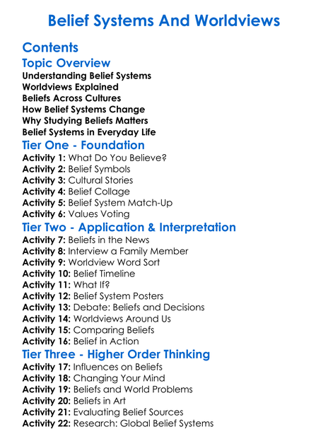 Belief Systems And Worldviews Worksheet Activity Booklet
