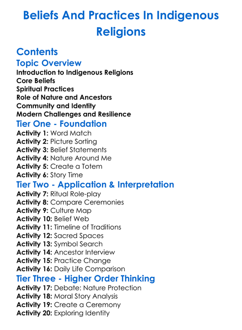 Beliefs And Practices In Indigenous Religions Worksheet Activity Booklet