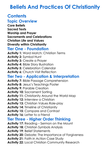 Beliefs And Practices Of Christianity Worksheet Activity Booklet