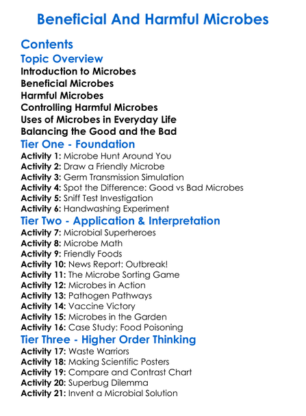 Beneficial And Harmful Microbes Worksheet Activity Booklet