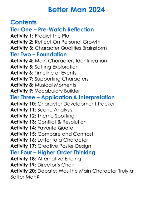Better Man 2024 Worksheet Activity Booklet