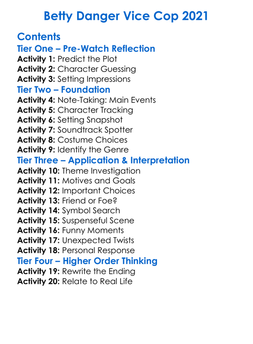 Betty Danger Vice Cop 2021 Worksheet Activity Booklet