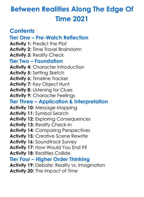 Between Realities Along The Edge Of Time 2021 Worksheet Activity Booklet
