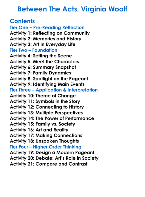 Between The Acts Virginia Woolf Worksheet Activity Booklet