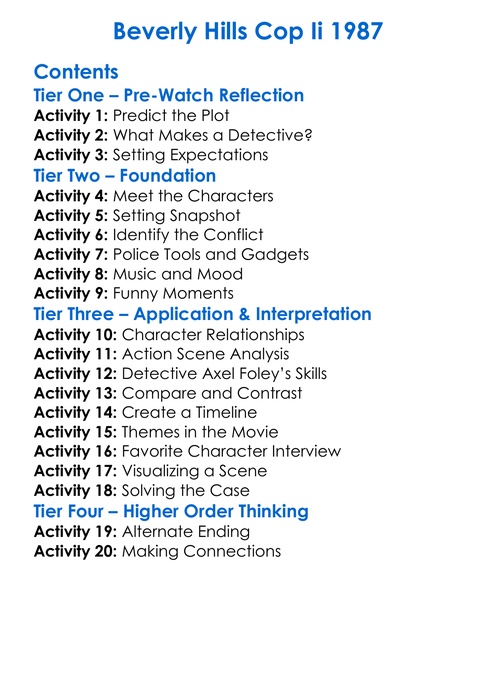 Beverly Hills Cop Ii 1987 Worksheet Activity Booklet