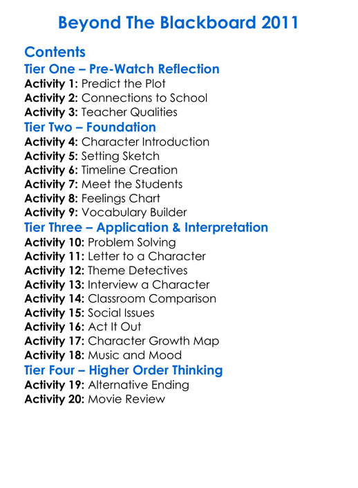 Beyond The Blackboard 2011 Worksheet Activity Booklet