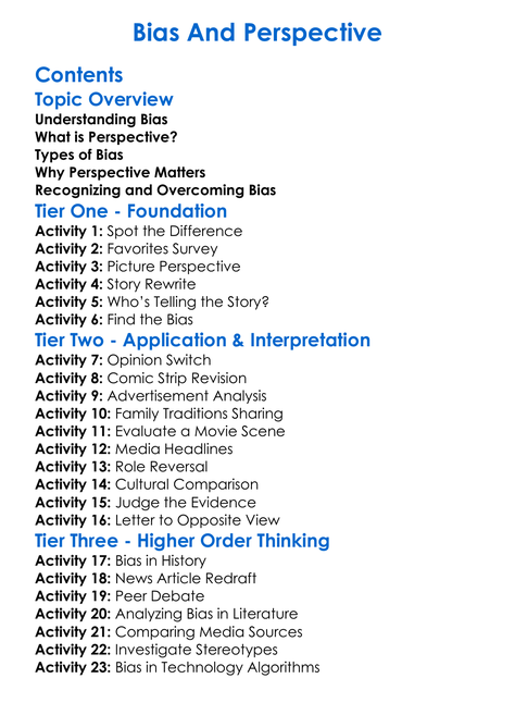 Bias And Perspective Worksheet Activity Booklet