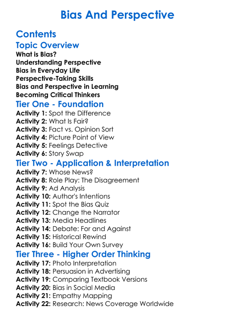 Bias And Perspective Worksheet Activity Booklet