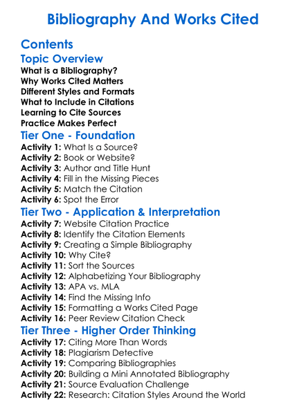 Bibliography And Works Cited Worksheet Activity Booklet