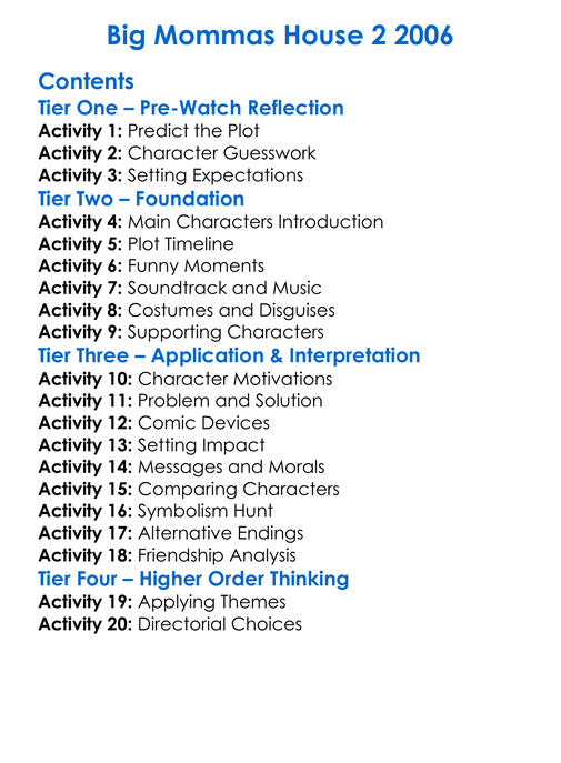 Big Mommas House 2 2006 Worksheet Activity Booklet