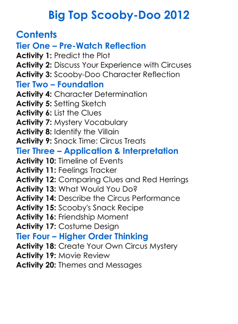 Big Top Scooby-Doo 2012 Worksheet Activity Booklet