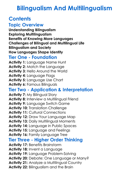 Bilingualism And Multilingualism Worksheet Activity Booklet