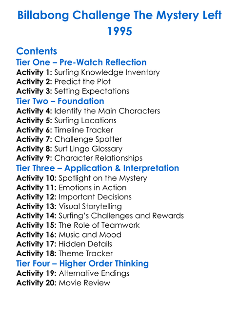 Billabong Challenge The Mystery Left 1995 Worksheet Activity Booklet