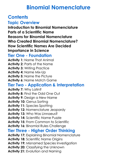 Binomial Nomenclature Worksheet Activity Booklet