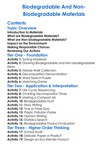 Biodegradable And Non-Biodegradable Materials Worksheet Activity Booklet