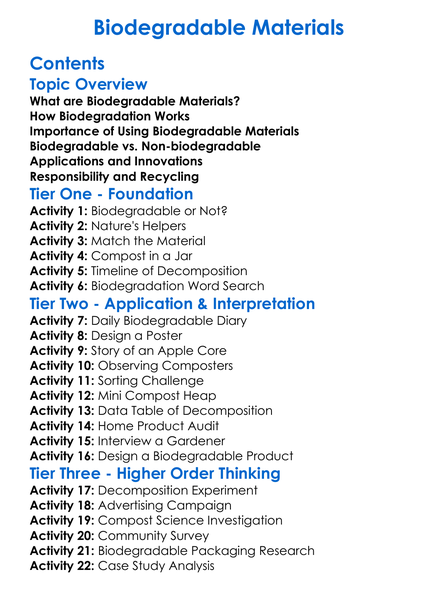 Biodegradable Materials Worksheet Activity Booklet