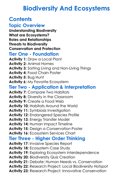 Biodiversity And Ecosystems Worksheet Activity Booklet