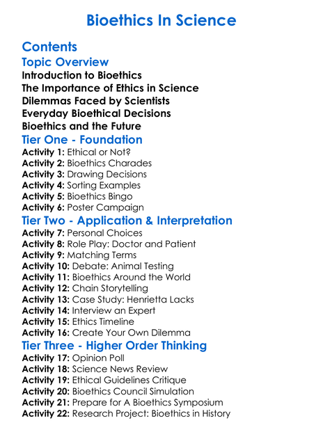 Bioethics In Science Worksheet Activity Booklet