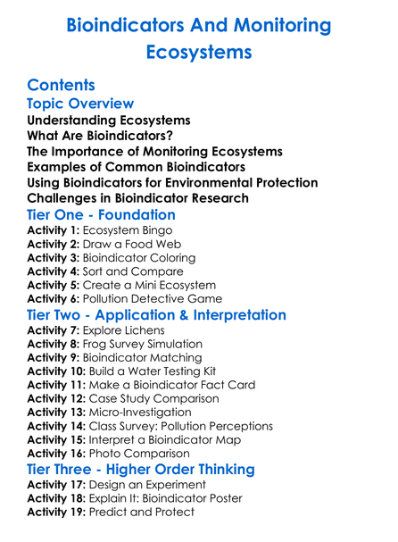 Bioindicators And Monitoring Ecosystems Worksheet Activity Booklet
