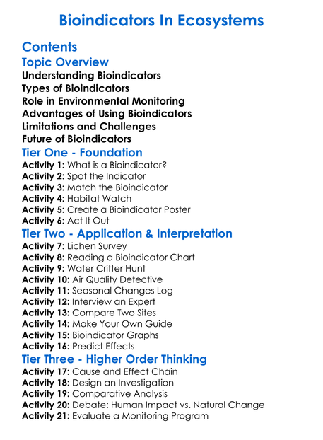 Bioindicators In Ecosystems Worksheet Activity Booklet