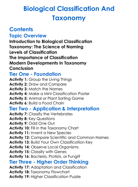 Biological Classification And Taxonomy Worksheet Activity Booklet