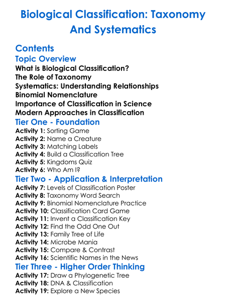 Biological Classification Taxonomy And Systematics Worksheet Activity Booklet