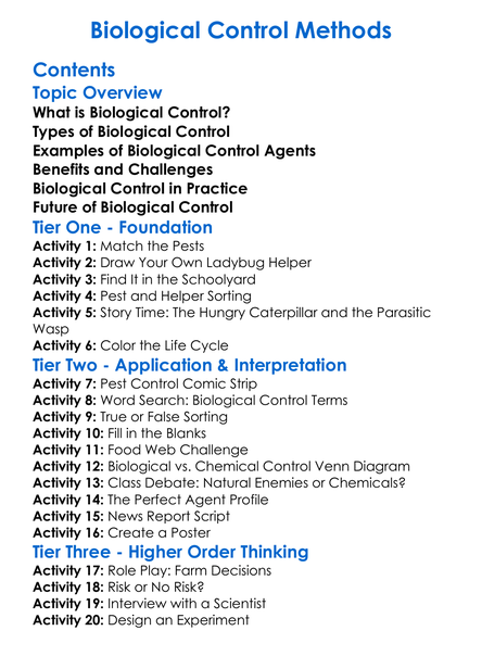 Biological Control Methods Worksheet Activity Booklet