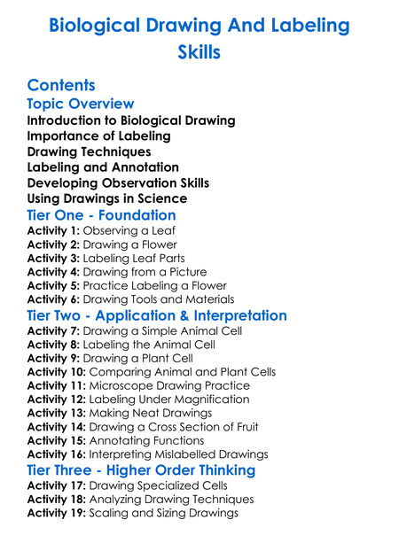 Biological Drawing And Labeling Skills Worksheet Activity Booklet