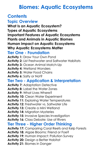 Biomes Aquatic Ecosystems Worksheet Activity Booklet