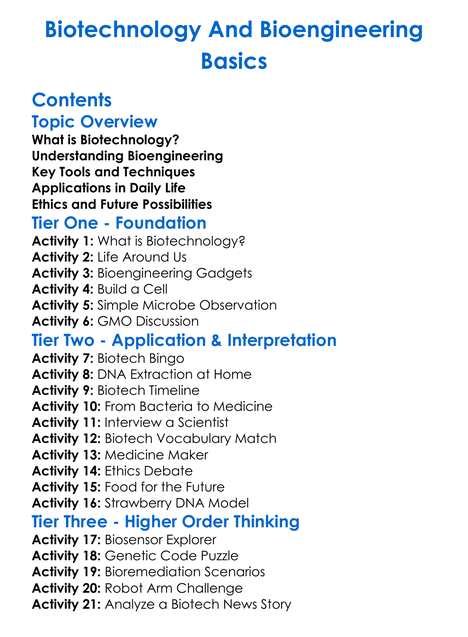 Biotechnology And Bioengineering Basics Worksheet Activity Booklet