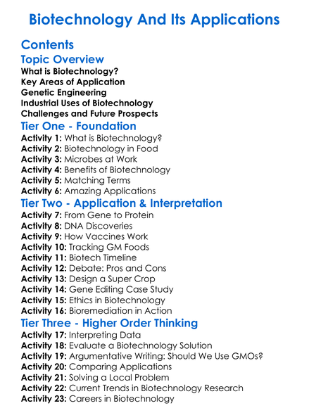 Biotechnology And Its Applications Worksheet Activity Booklet