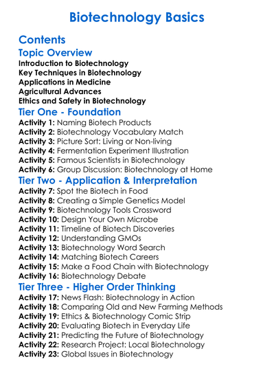 Biotechnology Basics Worksheet Activity Booklet