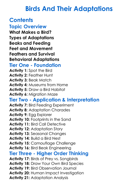 Birds And Their Adaptations Worksheet Activity Booklet