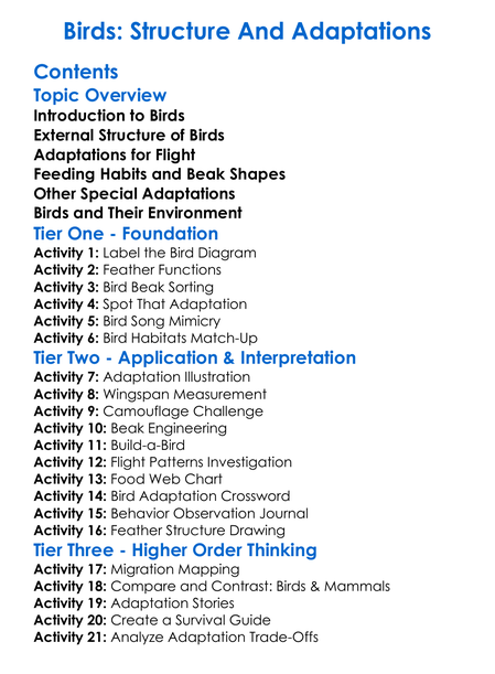Birds Structure And Adaptations Worksheet Activity Booklet