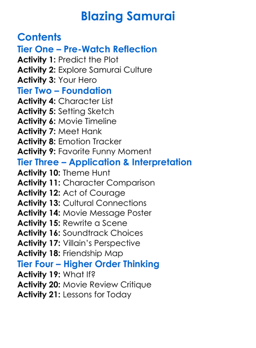 Blazing Samurai Worksheet Activity Booklet