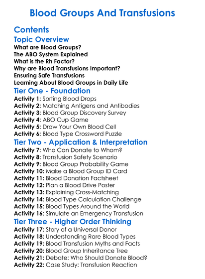 Blood Groups And Transfusions Worksheet Activity Booklet