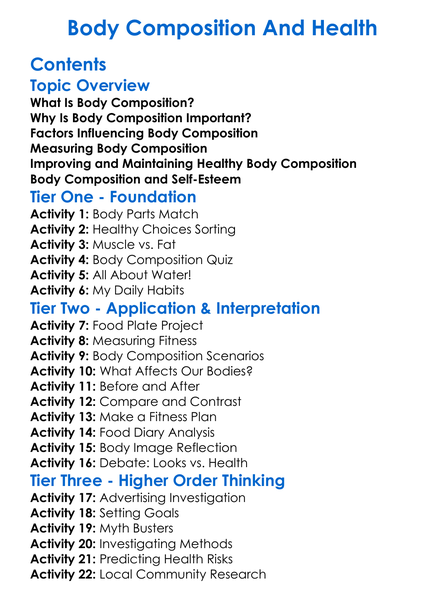 Body Composition And Health Worksheet Activity Booklet