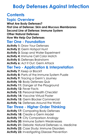 Body Defenses Against Infection Worksheet Activity Booklet