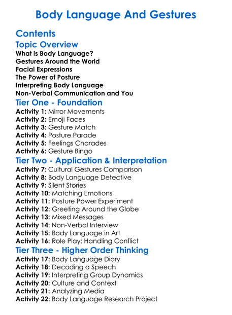 Body Language And Gestures Worksheet Activity Booklet